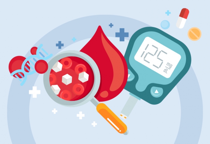 글루코스는 적혈구의 헤모글로빈과 결합하여 당화혈색소(HbA1c)를 형성합니다. HbA1c는 최근 2~3개월간의 평균 혈당을 반영하므로 공복 여부와 무관하게 측정할 수 있습니다. 일반적으로 당뇨병 진단 기준은 HbA1c 6.5% 이상이며, 정상 범위는 약 4.0~5.6% 수준으로 알려져 있습니다.