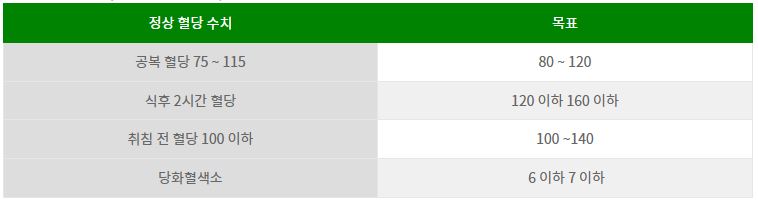 #혈당 참고치(출처 예시: 종합검사 기준) - 공복 혈당 정상: 100 mg/dL 미만, 식후 2시간 혈당 정상: 140 mg/dL 미만