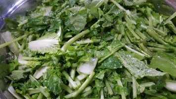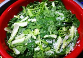 손질한 열무는 체 위에 올려 물기를 빼거나, 자연스럽게 물이 빠지도록 잠시 두세요. 물기가 많으면 양념의 간이 흐려질 수 있으니 적당히 물기를 제거하는 것이 중요합니다.